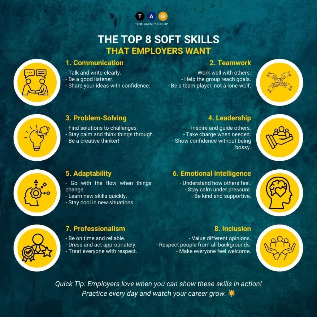Soft skills are your ticket to career success. They help you connect, grow, and stand out in any field. So, what’s the first skill you’re going to work on? Let us know in the comments! Ready to level up your career? Start small—pick one skill, practice it daily, and watch the magic happen. 🚀